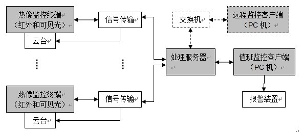本地紅外熱像監(jiān)控與分析診斷系統(tǒng)由三大部分組成:紅外熱像終端,信號傳輸,處理服務(wù)器;。