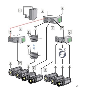 2)     直接網(wǎng)線傳輸(編號2所示)和無線傳輸(無線路由器,編號5所示)