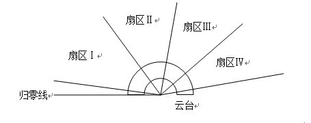 當(dāng)需要進行無人值守時按下巡航按鈕,監(jiān)控系統(tǒng)即處于自動監(jiān)測狀態(tài),它會從歸零線開始,依次對四個扇區(qū)進行巡航掃描。下圖顯示出云臺在巡航模式下的工作狀態(tài):