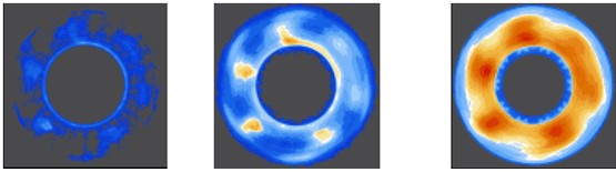 下面是剎車片動(dòng)作后,溫度變化過程中的三張熱圖。