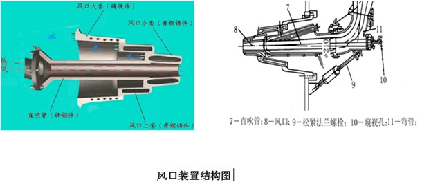 高爐風口裝置是高爐最重要的動力設備。它不但直接提供高爐冶煉所需的氧氣,而且提供克服高爐料柱阻力所需的氣體動力。現(xiàn)代大、中型高爐所用的鼓風機,大多用汽輪機驅動的離心式鼓風機和軸流式鼓風機。風口裝置(儲存熱量)作為煉鐵最前一個工藝,是把含有氧氣、煤粉等高溫氣體傳遞給高爐,進風口分為熱風微管、上接口、中接口、下接口、彎頭、直吹管,然后進入爐體。