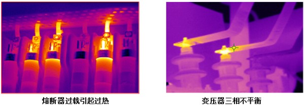 過載/三相不平衡/諧波會引起過電流或過電壓,而過載、諧波甚至?xí)鹱儔浩麒F心的渦流,從而使設(shè)備局部過熱,熱像儀可以捕捉設(shè)備過熱處并直觀顯示出來。
