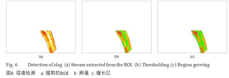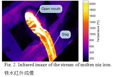 闕值Ths必須高于最大可能的鐵水溫度,在幾乎相同的溫度下,相對(duì)于鐵水,熔渣使用相同測(cè)量配置時(shí)會(huì)出現(xiàn)超過(guò)這個(gè)闕值的溫度。因此,選擇的閾值可以區(qū)分渣和鐵水。為Ths使用1800?C