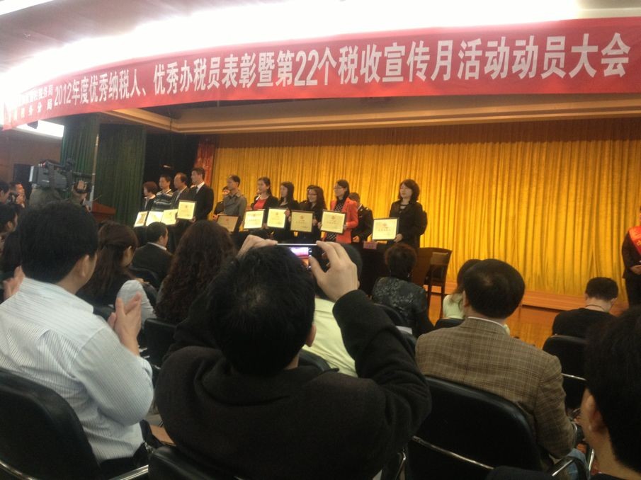 •    龍崗區(qū)國(guó)稅局龍崗稅務(wù)分局召開(kāi)2012年度優(yōu)秀納稅人、優(yōu)秀辦稅員表彰暨第22個(gè)稅收宣傳月活動(dòng)動(dòng)員大會(huì),對(duì)50位優(yōu)秀納稅人、50位優(yōu)秀辦稅員進(jìn)行了表彰。