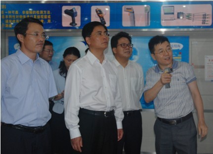 下午3時許,杰福儀器的幾位副總已經(jīng)齊聚公司前臺,等待今天的貴賓——龍崗區(qū)區(qū)委書記楊洪、區(qū)長馮現(xiàn)學一行的到來。隨著電梯門的緩緩打開,區(qū)委書記一行十多人在杰福儀器總經(jīng)理鄭翔的陪同下迎面走來。參觀的第一站,就是亞泰光電的產(chǎn)品、榮譽展廳,鄭翔總經(jīng)理手持公司自主生產(chǎn)的紅外測溫儀作為電子筆,向區(qū)領導們介紹了公司的鐵譜儀、鐵量儀、工業(yè)內(nèi)窺鏡等產(chǎn)品在業(yè)界的技術(shù)優(yōu)勢以及所取得的一些成就,并就鐵譜儀等油液分析產(chǎn)品在天安門閱兵、索馬里護航中起到的重大作用做了詳細匯報。
