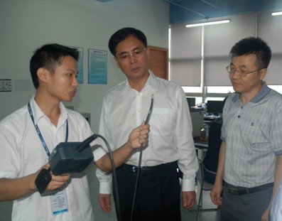研發(fā)總監(jiān)向楊書記演示內(nèi)窺鏡的彎曲控制